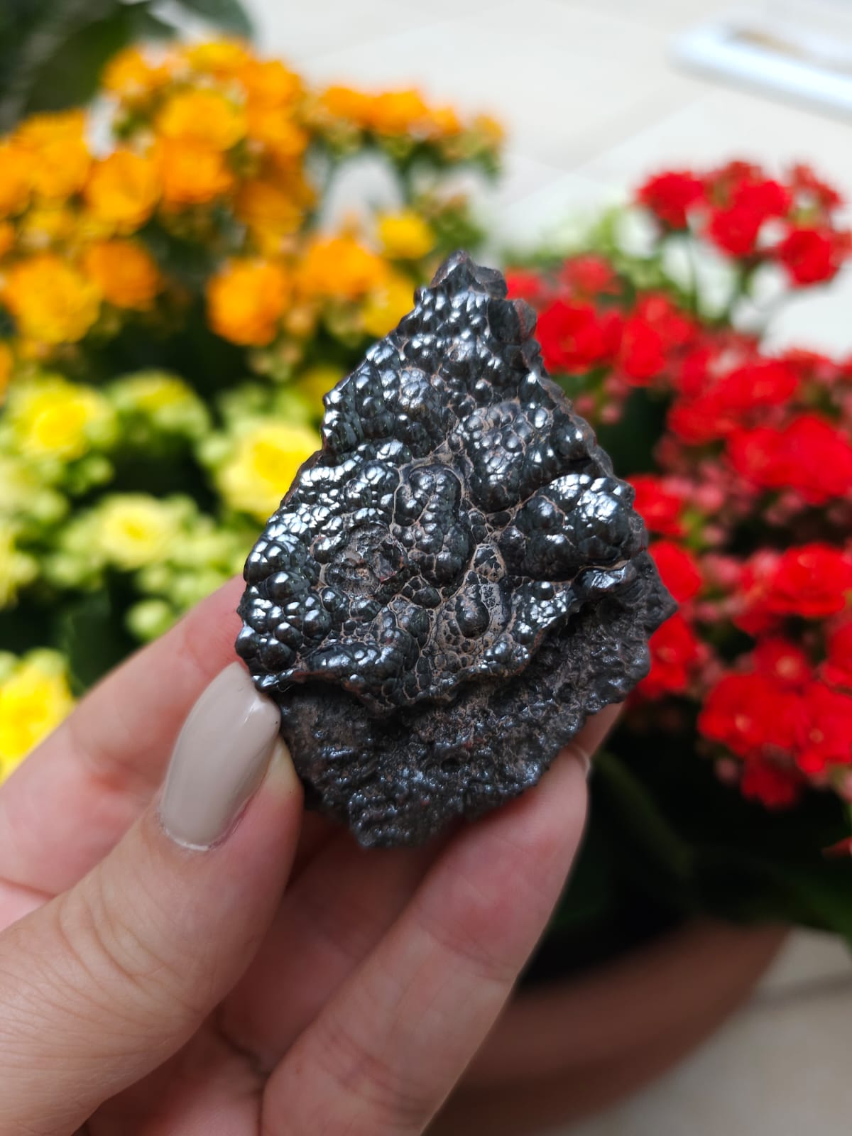 A Hematita Botrioidal é rara e sua formação é caracterizada por “bolhas” na sua superfície, uma formação que carrega o poder da metamorfose. A hematita estimula o poder inato da energia criativa invisível, enquanto simultaneamente estende sua influência para a manifestação, mostrando a capacidade de transformação de frequências vibratórias.