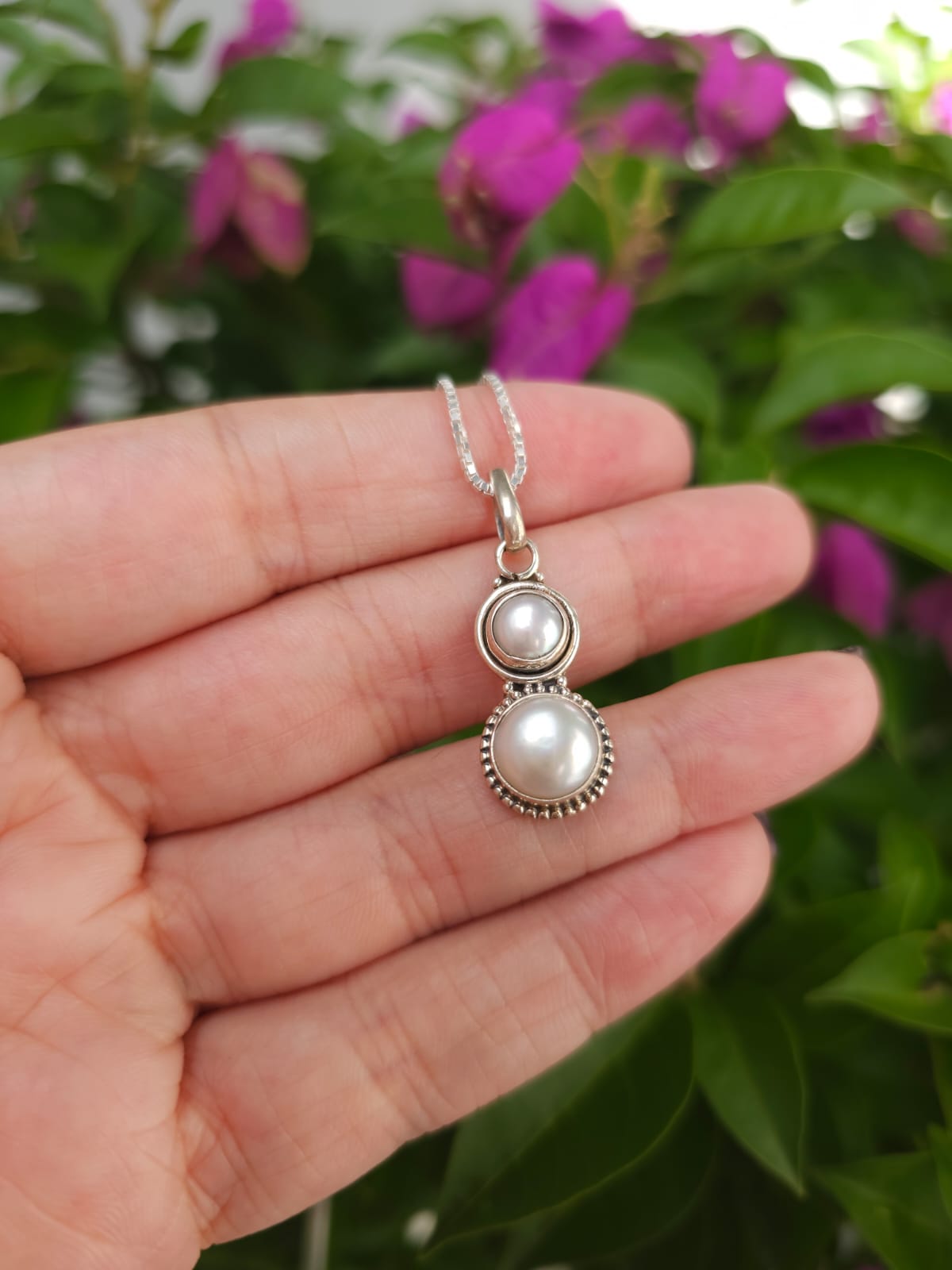 Pingente de Pérolas trabalhadas em prata 925, com 2,4 cm.
