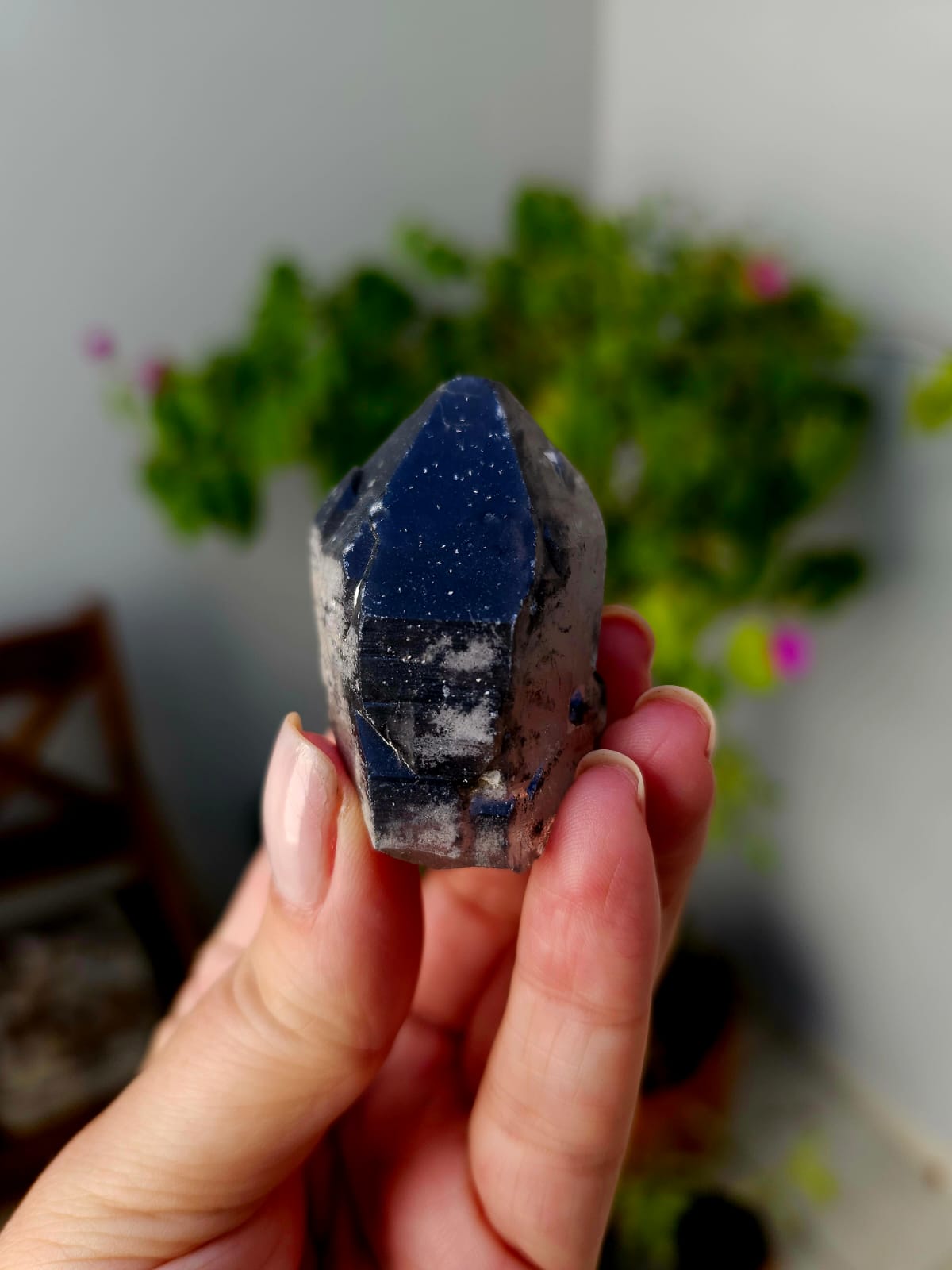Pontas totalmente naturais (nada de lapidação) e que durante a sua formação receberam uma quantidade considerável de Hematita, quando ela se cristalizou dentro ela ficou escura, cinza puxando para preto!
