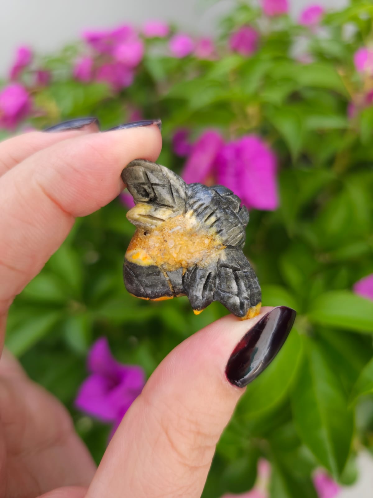 Bumblebee 💎 a pedra da abelha vibra em tons de laranja e amarelo com Calcita cinza e em algumas vezes com inclusão de Pirita ✨️