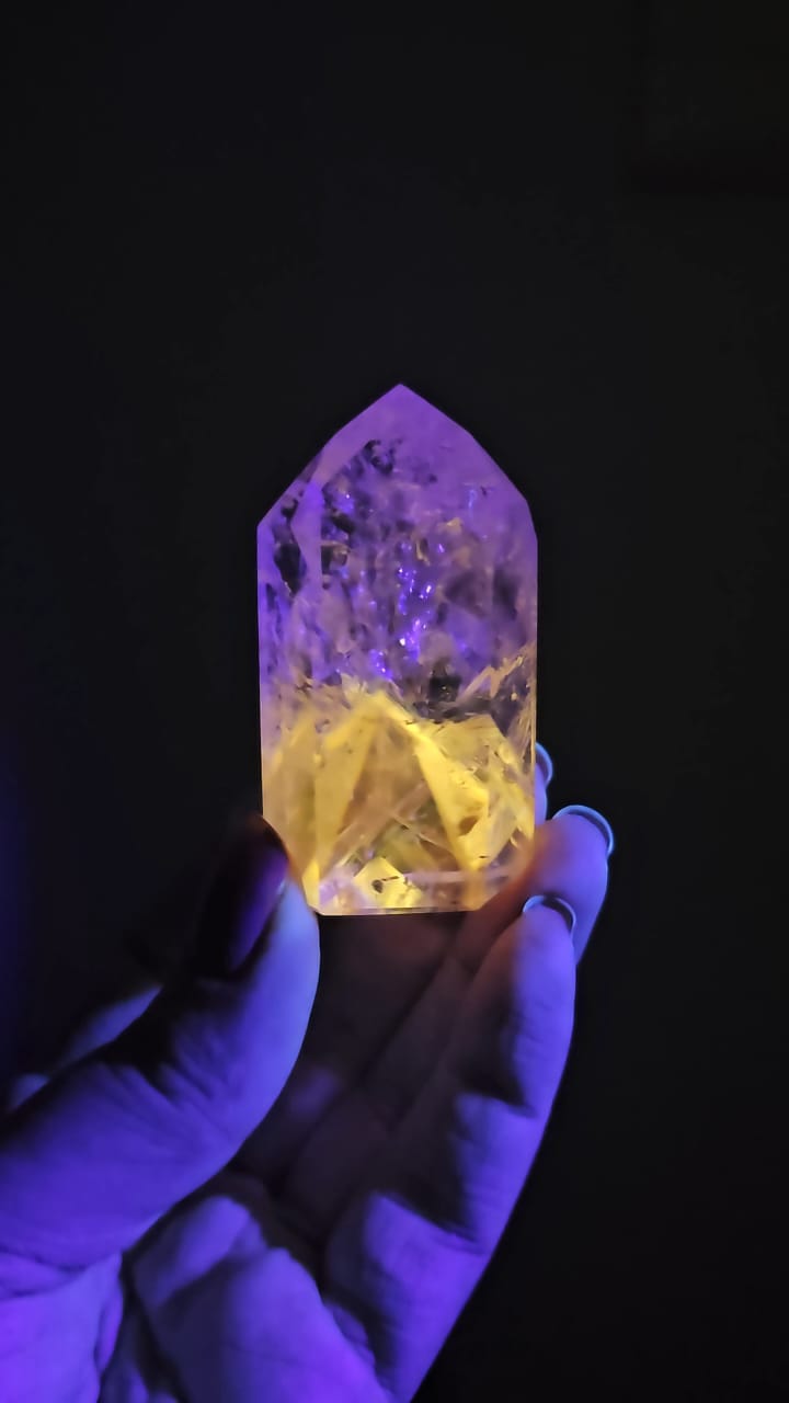 Reações UV em cristais de Quartzo são muito raras principalmente em linhas definidas como é o caso destas preciosidades, em sua maioria formando Phantom 💎