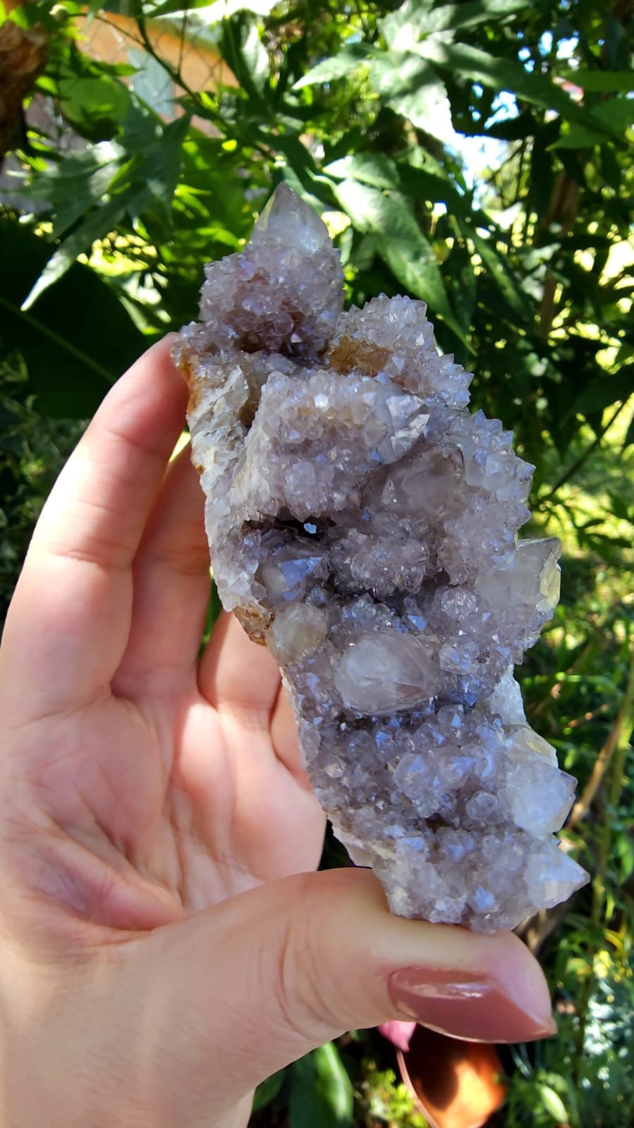 Por unir a vibração expansiva do Quartzo Espírito à ancoragem do quartzo fumê, essa formação cria um escudo energético. Ela auxilia na transmutação de energias negativas, protege contra influências externas desarmônicas e fortalece o campo pessoal ✨️