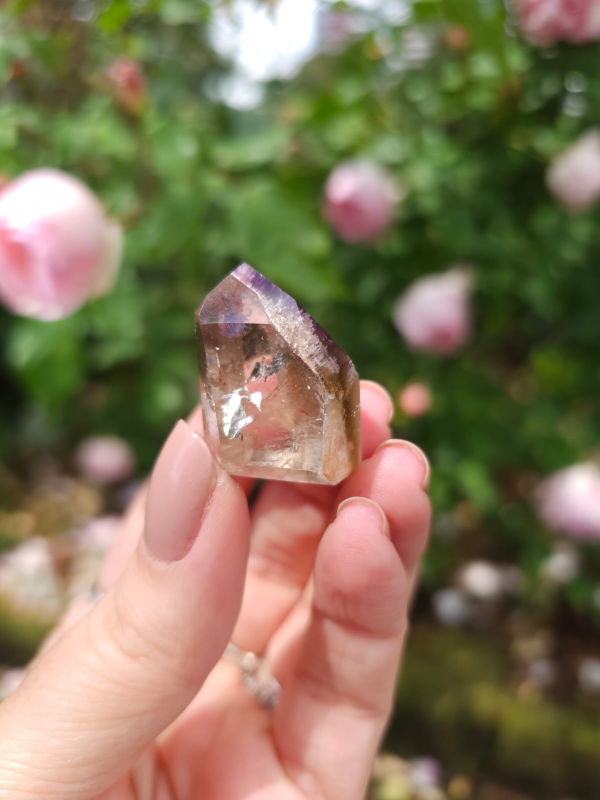 Uma mistura de cristais incluindo de forma alternada Fumê, Citrino e Quartzo Incolor, recebendo uma capa de Ametista gerando uma energia de altíssima vibração✨