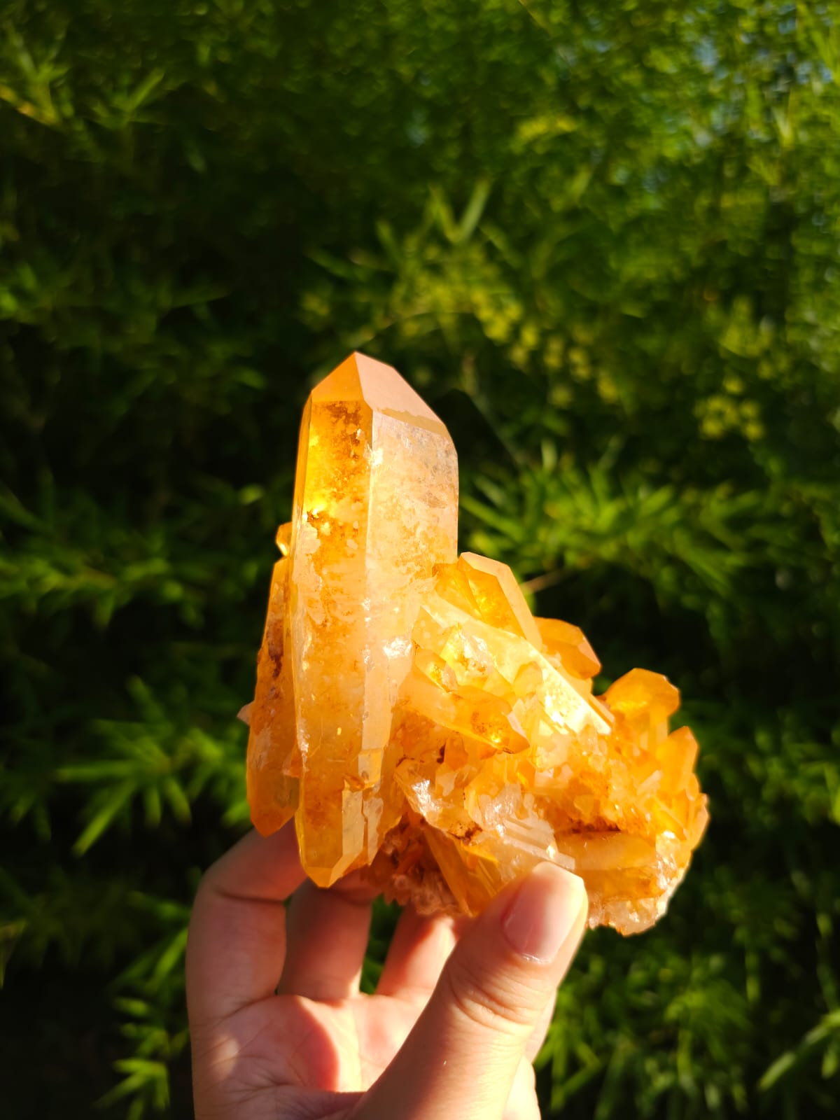 Quartzos Tangerina trabalham com a força mineral do ferro, elemento que da essa cor vibrante a eles, sua origem é de Minas Gerais, fora do Brasil são encontrados em Madagascar.