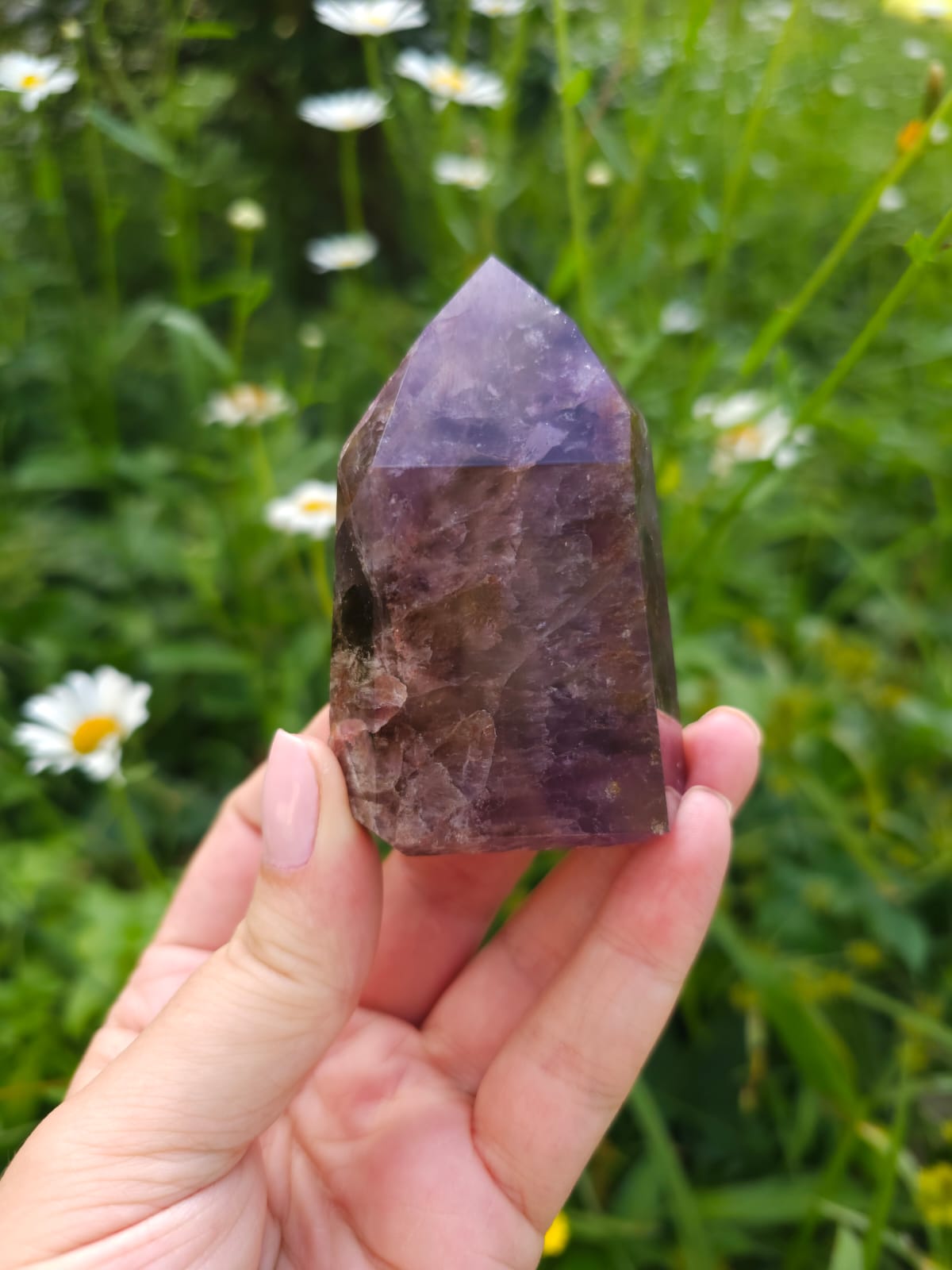 Ele possui as energias de até sete minerais, o que lhe confere um grande poder e uma altíssima vibração: Ametista, Quartzo Fumê, Quartzo com Rutilo, Goethita, Lepidocrocita, Quartzo e Cacoxenita são minerais que constumam compor essa formação✨
