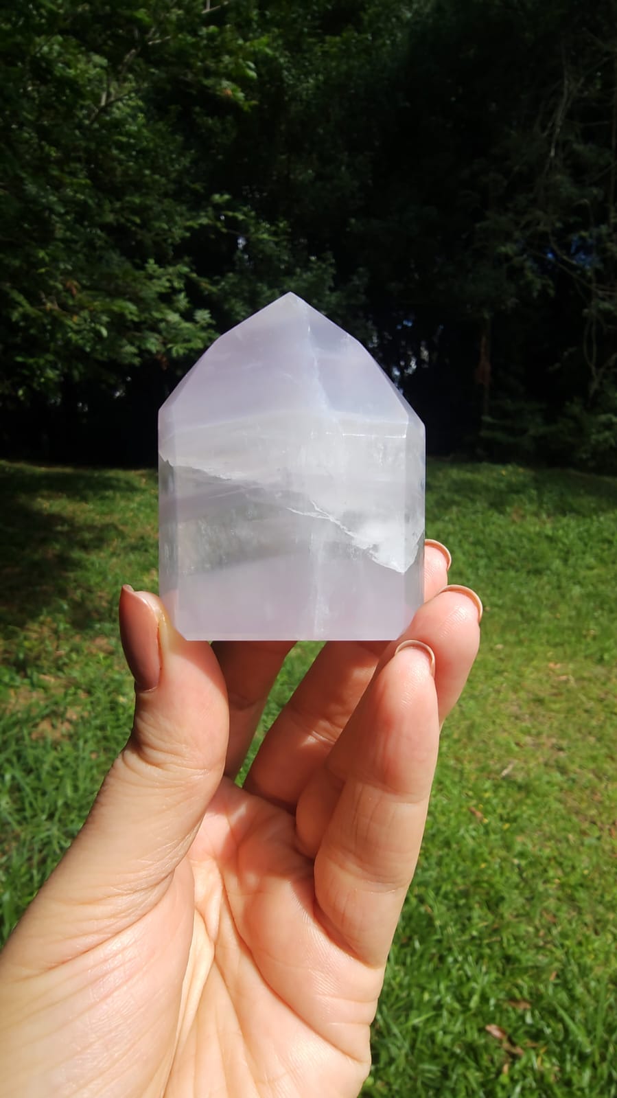 A Fluorita Lavanda carrega uma energia suave, quase etérea, como um sopro de calma que envolve a mente e o espírito.