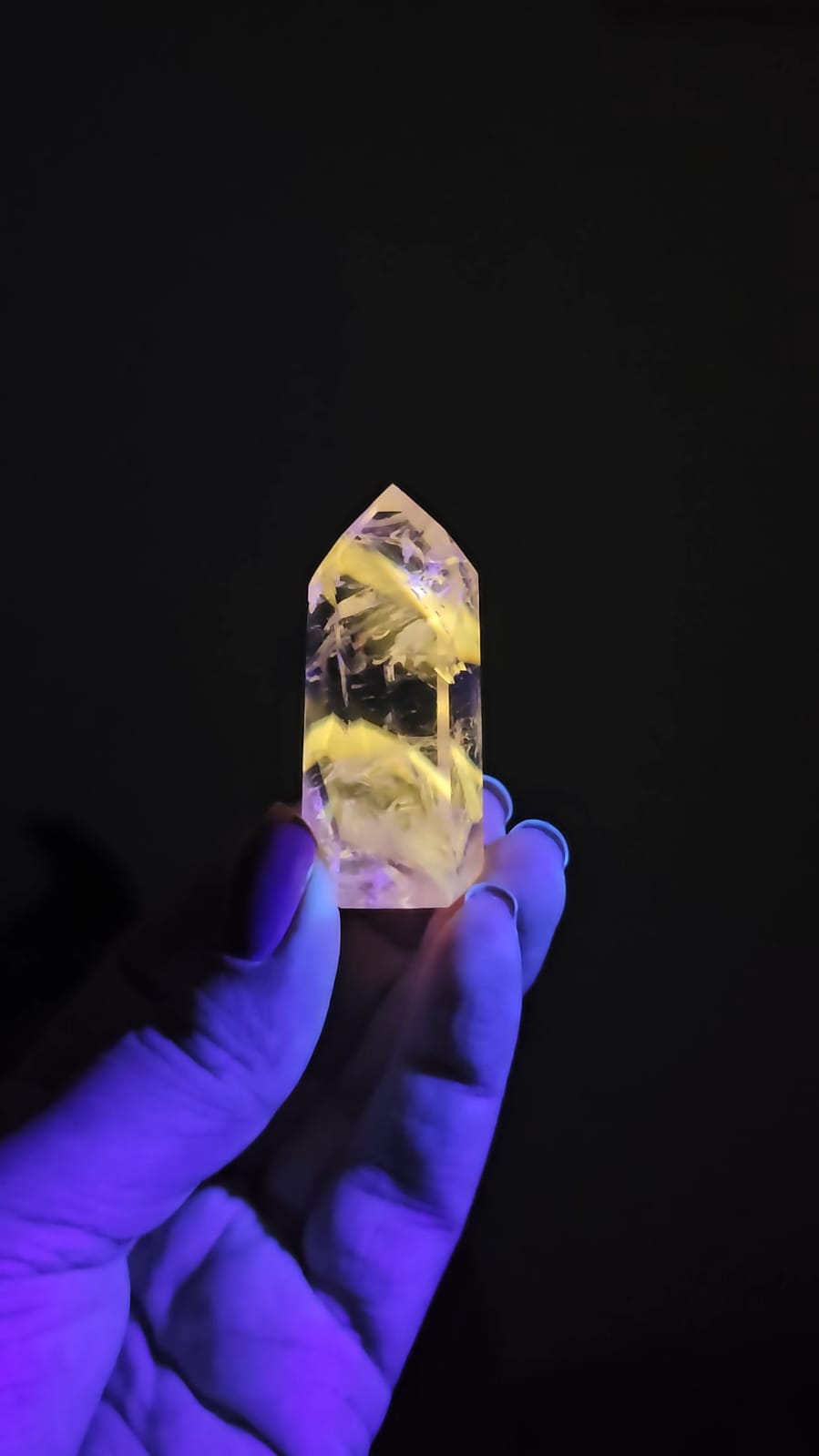 Reações UV em cristais de Quartzo são muito raras principalmente em linhas definidas como é o caso destas preciosidades, em sua maioria formando Phantom 💎