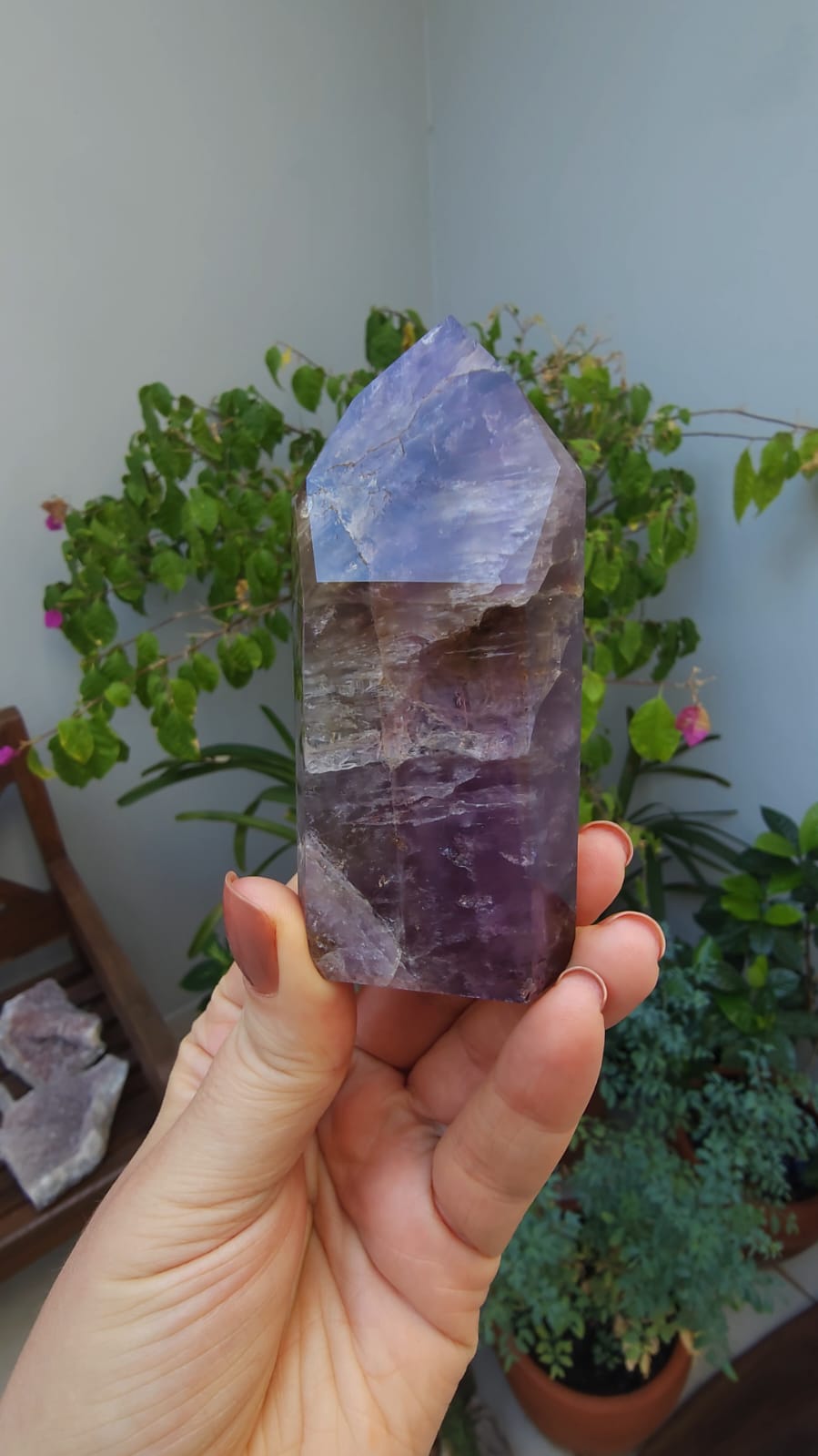 Ele possui as energias de até sete minerais, o que lhe confere um grande poder e uma altíssima vibração: Ametista, Quartzo Fumê, Quartzo com Rutilo, Goethita, Lepidocrocita, Quartzo e Cacoxenita são minerais que constumam compor essa formação✨