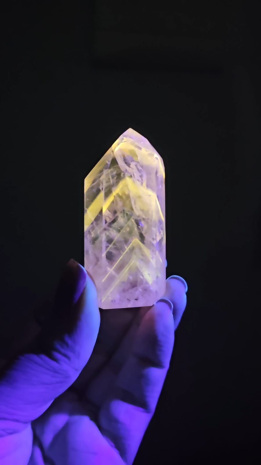 Reações UV em cristais de Quartzo são muito raras principalmente em linhas definidas como é o caso destas preciosidades, em sua maioria formando Phantom 💎