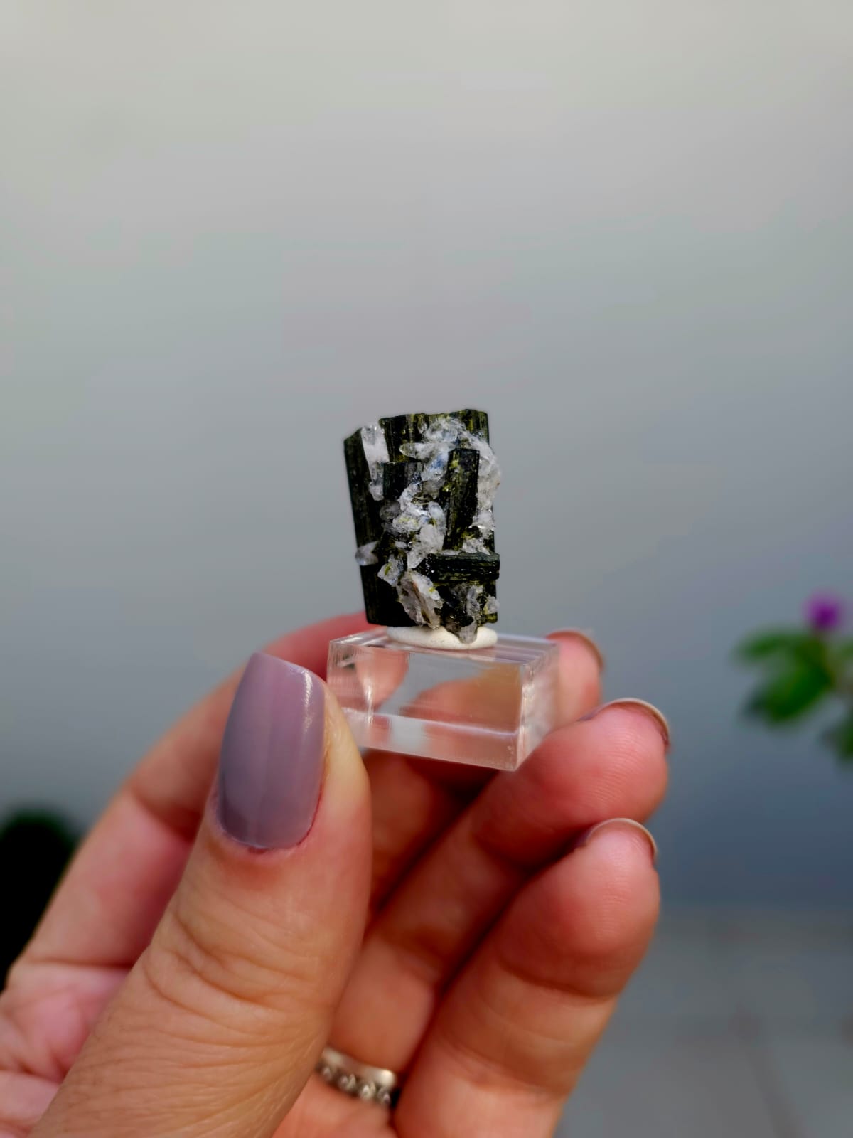 Nesta formação Epidoto está coberto de Quartzo em Drusa, nesta alquimia o Quartzo é um grande amplificador da energia do Epidoto, principalmente pelo fato de estar em Drusa ✨