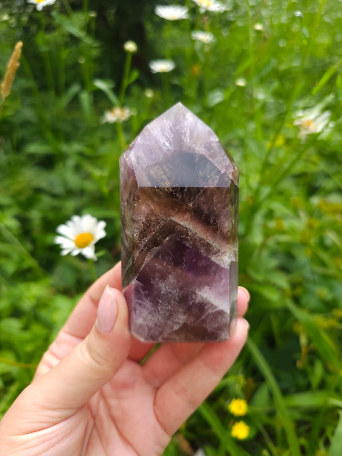 Ele possui as energias de até sete minerais, o que lhe confere um grande poder e uma altíssima vibração: Ametista, Quartzo Fumê, Quartzo com Rutilo, Goethita, Lepidocrocita, Quartzo e Cacoxenita são minerais que constumam compor essa formação✨