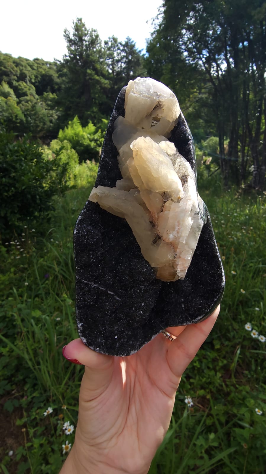 Como se guardasse pequenas estrelas presas em sua profundidade, uma intensa Calcedônia Negra lembrando uma galáxia ✨️