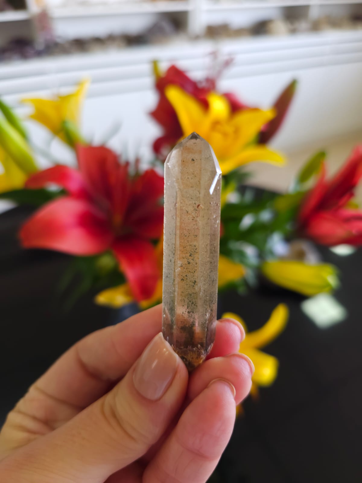 São cristais que tem inclusões minerais diversas, muitas vezes coloridas em diferentes tons ✨