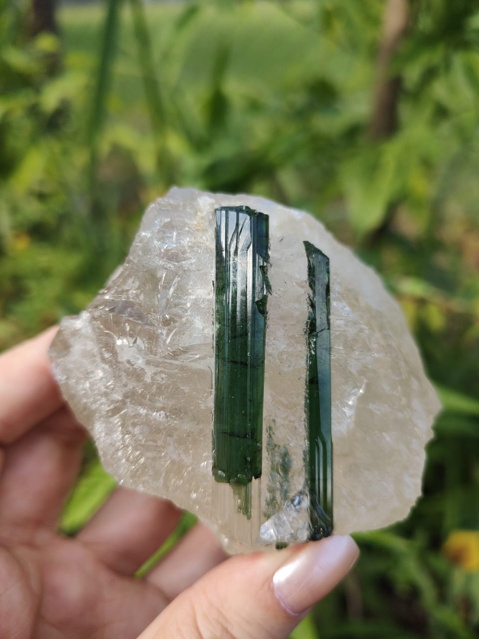 Verdadeiras jóias em formação natural, Turmalinas Verdes super extras em sua formação natural na matriz de Quartzo ✨