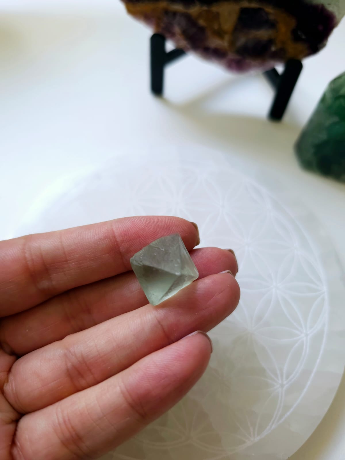 O octaedro está ligado ao desenvolvimento mental, por esse motivo as Fluoritas Octaedros trabalham com força no nosso corpo mental.