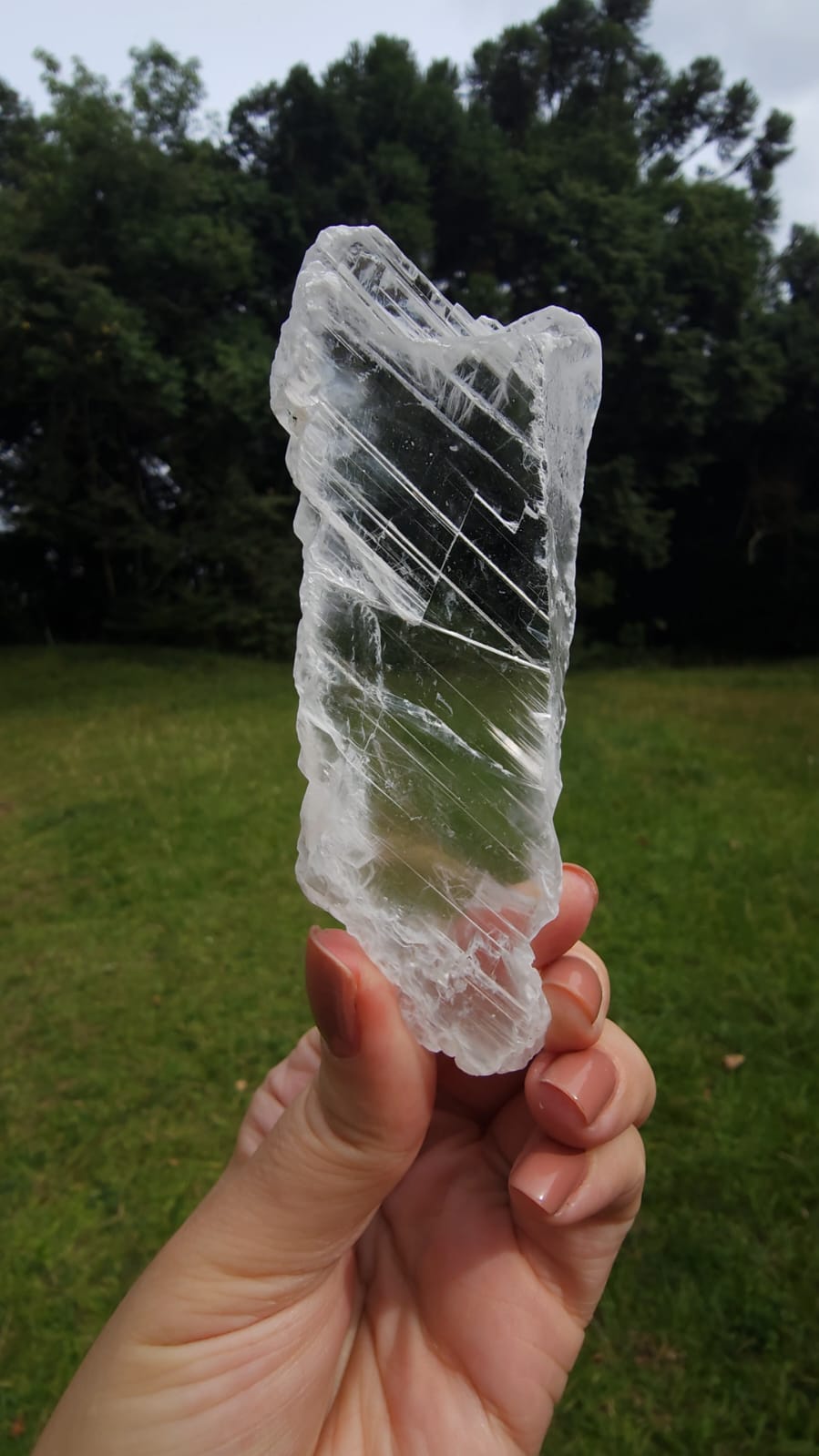 Sua vibração é sutil, mas extremamente potente — um dos mais elevados campos de purificação entre os cristais. Ela emana uma frequência limpa, clara e constante, capaz de harmonizar não apenas quem a utiliza, mas também outros cristais ao seu redor, elevando e refinando suas energias ✨
