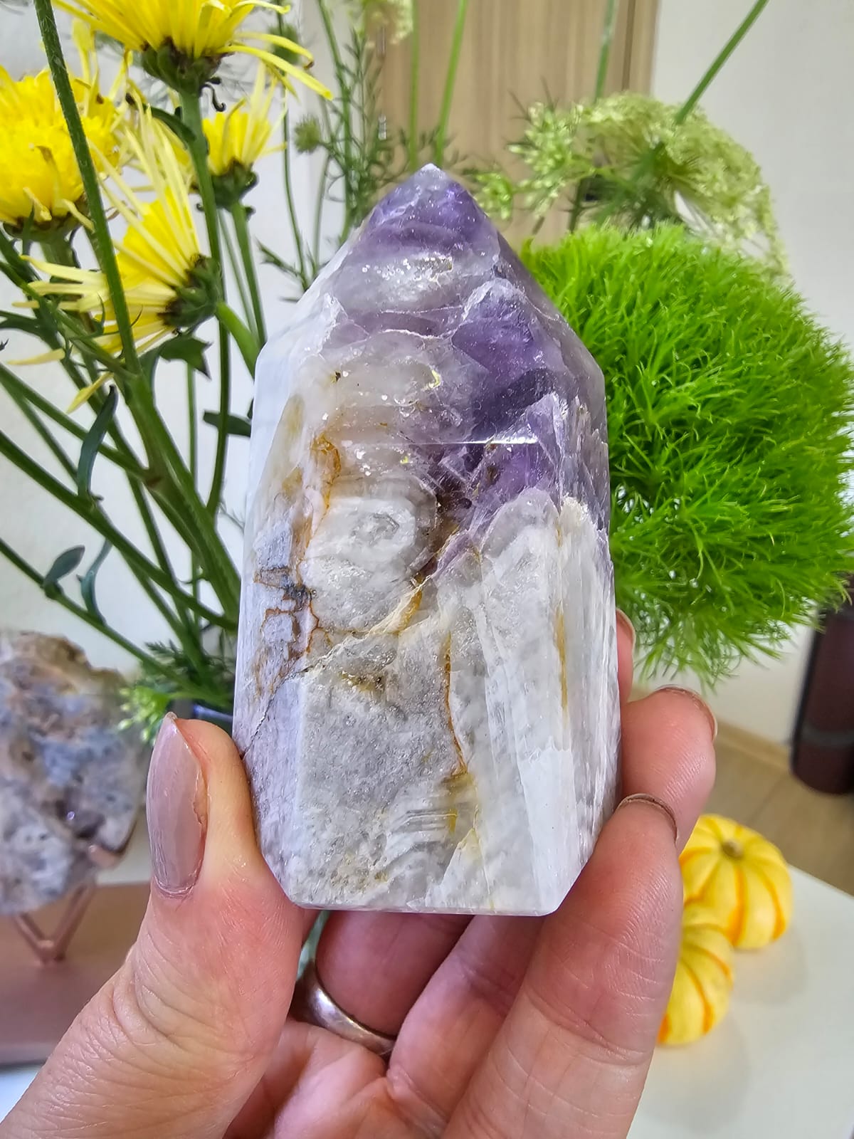A Ametista Chevron é uma formação de Ametista com Quartzo Branco, atingindo assim um padrão vibratório mais elevado que a Ametista normal✨