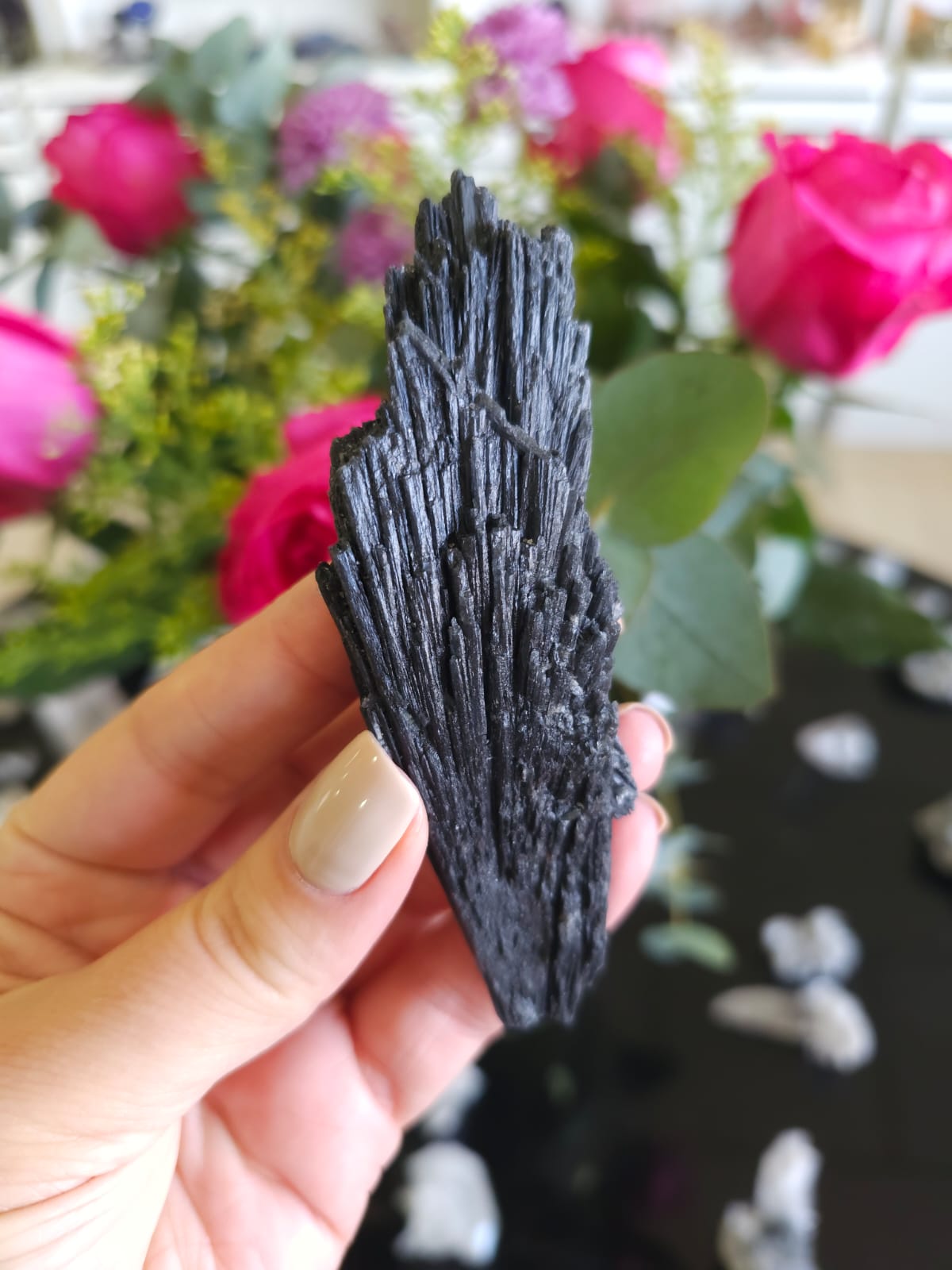 Um cristal que faz correspondência com a Cianita Azul, a energia da Cianita Negra também trabalha nossa proteção contra energias pesadas e até mesmo nossa própria negatividade ✨