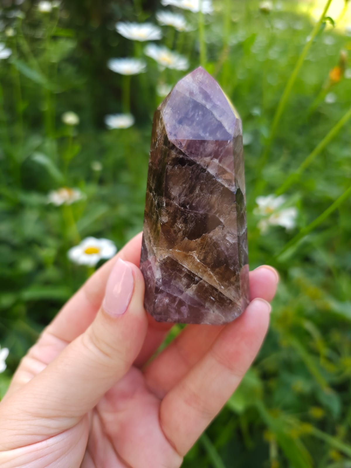 Ele possui as energias de até sete minerais, o que lhe confere um grande poder e uma altíssima vibração: Ametista, Quartzo Fumê, Quartzo com Rutilo, Goethita, Lepidocrocita, Quartzo e Cacoxenita são minerais que constumam compor essa formação✨