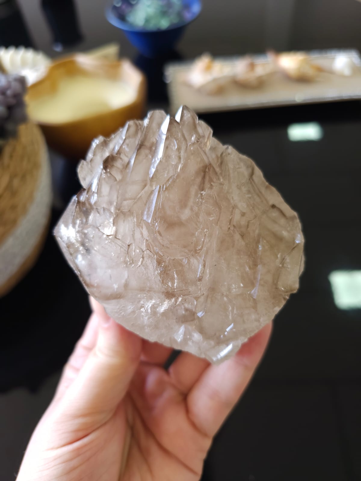 Esse cristal recebe todo o espectro de energia da mais luz e ajusta para uma frequência que possa ser absorvida por nós, por esse motivo a presença de um Elestial contigo ou no ambiente de cura que você estiver, permite você receba a energia cristalina sem possíveis desconfortos, pois ele molda a energia para nossa frequência vibratória.