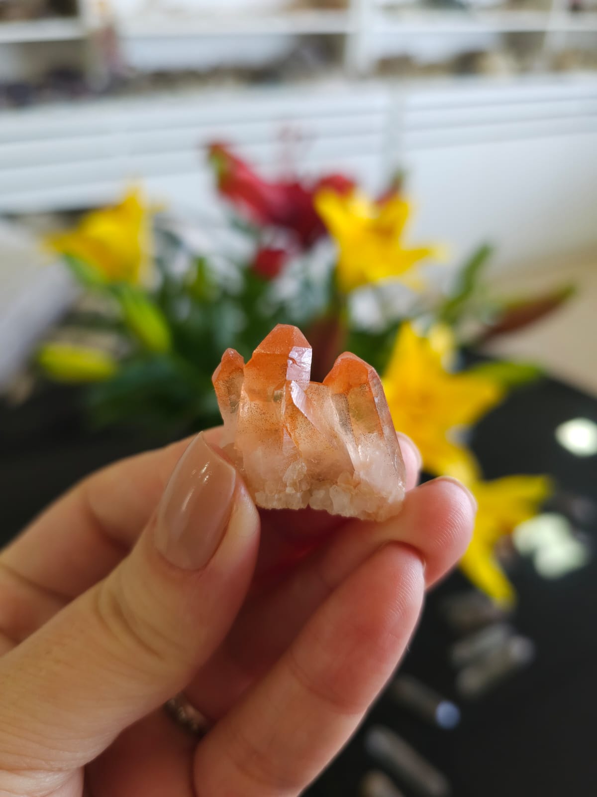Quartzos Tangerina trabalham com a força mineral do ferro, elemento que da essa cor vibrante a eles, sua origem é de Minas Gerais, fora do Brasil são encontrados em Madagascar ✨