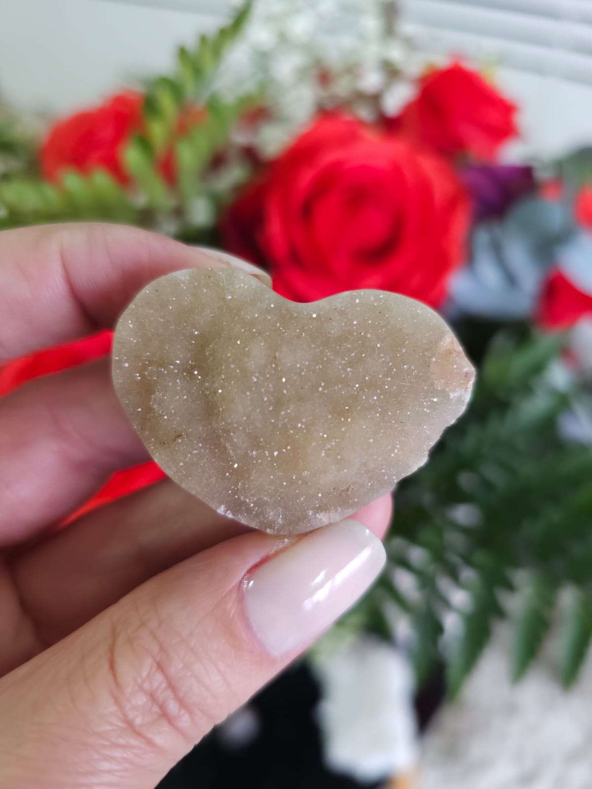 Cristalização de Ágata em tons de verde, lapidado em formato de coração!