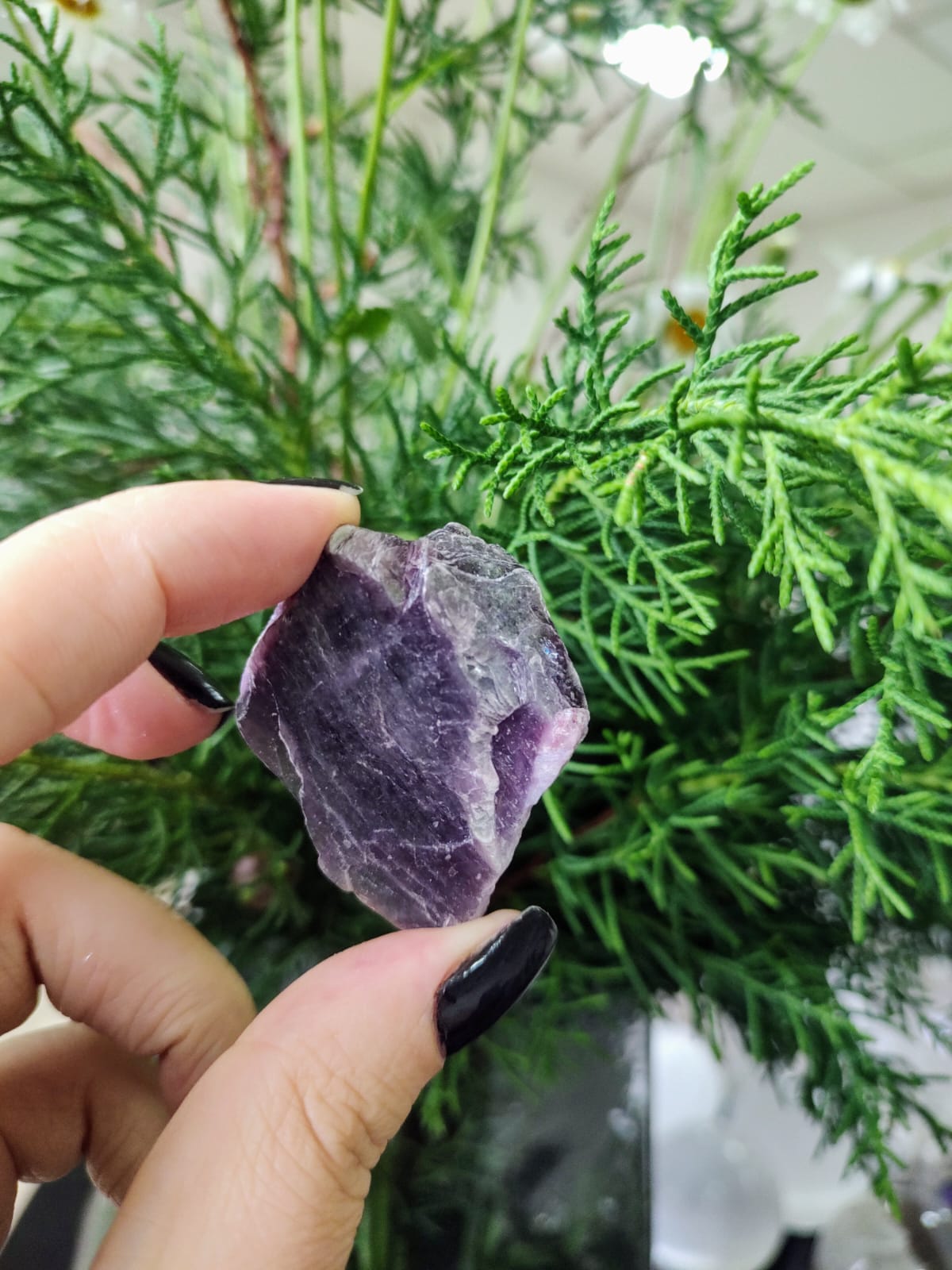A Lepidolita apresenta a mistura do rosa (coração) com o roxo (mente).