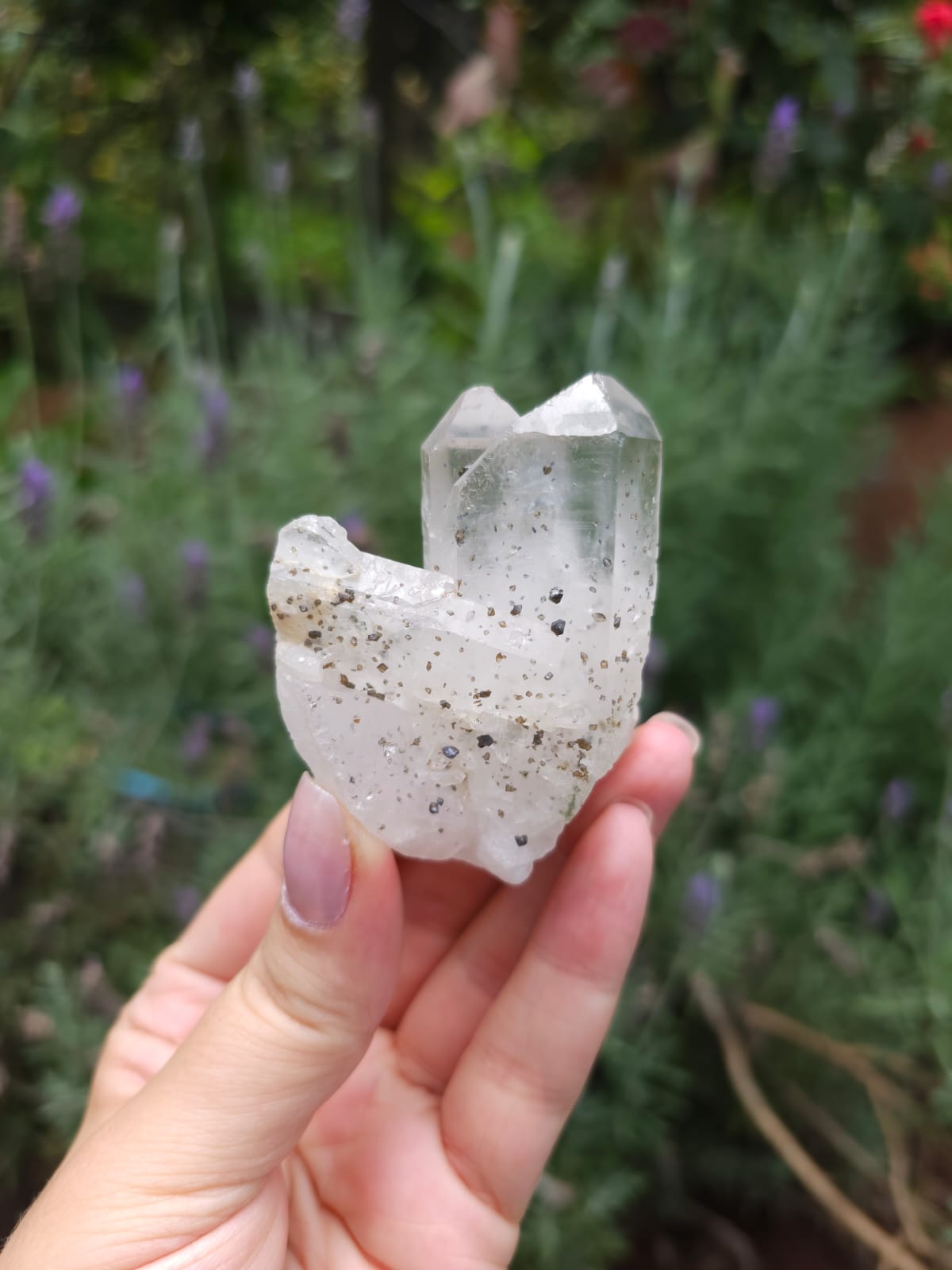 FORÇA é a essência da Hematita, uma vibração forte de aterramento nos trazendo para o aqui e agora, ampliado pelo quartzo transparente.