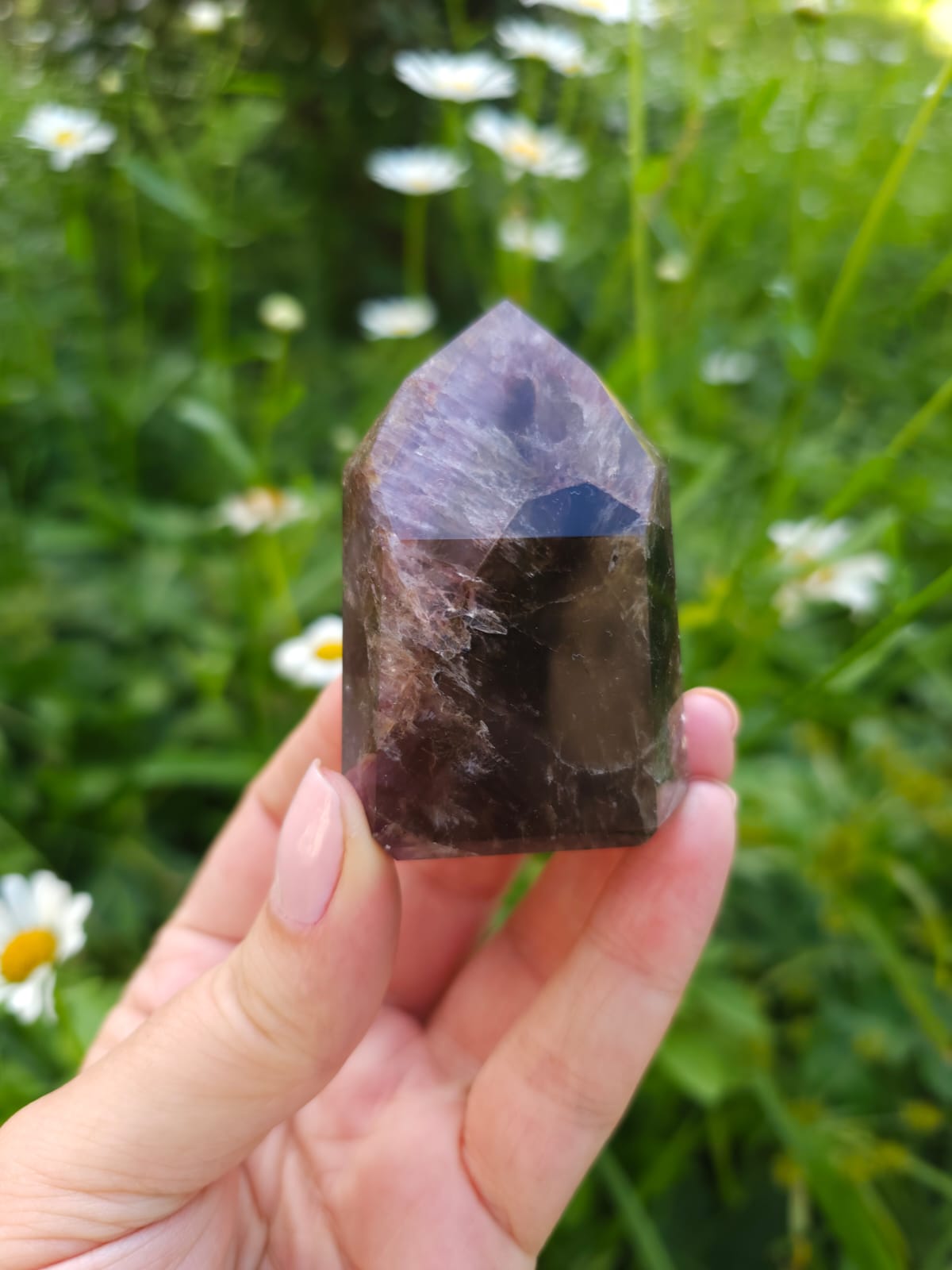 Ele possui as energias de até sete minerais, o que lhe confere um grande poder e uma altíssima vibração: Ametista, Quartzo Fumê, Quartzo com Rutilo, Goethita, Lepidocrocita, Quartzo e Cacoxenita são minerais que constumam compor essa formação✨