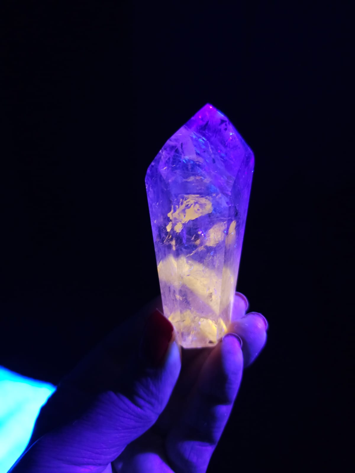 Reações UV em cristais de Quartzo são muito raras principalmente em linhas definidas como é o caso destas preciosidades, em sua maioria formando Phantom 💎