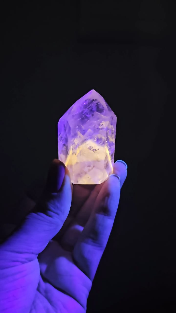 Reações UV em cristais de Quartzo são muito raras principalmente em linhas definidas como é o caso destas preciosidades, em sua maioria formando Phantom 💎