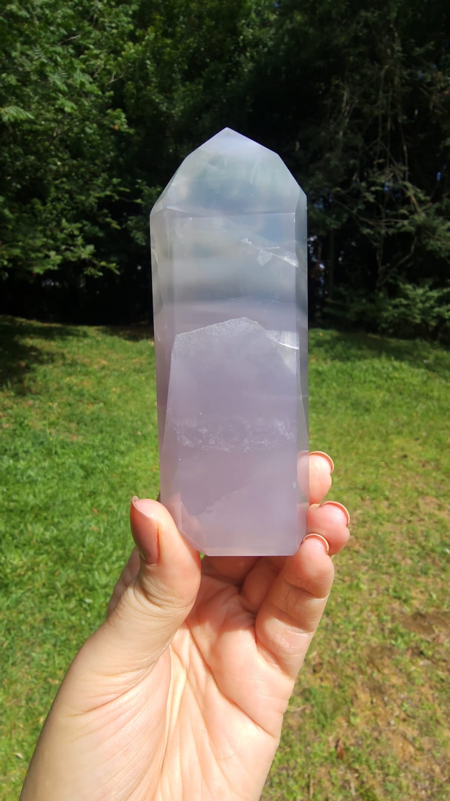 A Fluorita Lavanda carrega uma energia suave, quase etérea, como um sopro de calma que envolve a mente e o espírito.