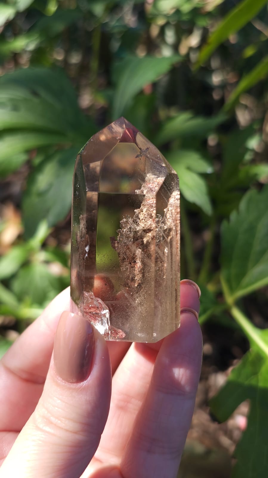 Em algumas raras vezes durante o crescimento de um cristal, camadas de Clorita ficam depositadas no seu topo e quando o cristal volta a crescer essa Clorita vai formando lindas camadas piramidais verdes ✨