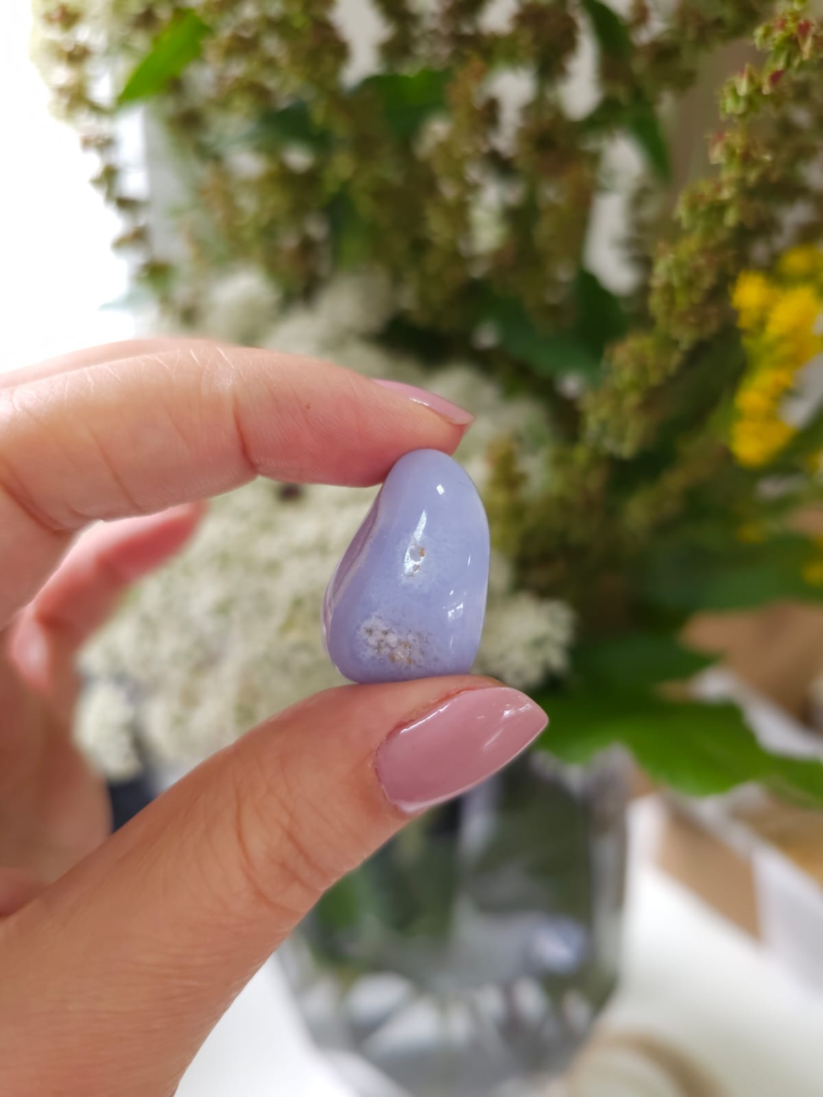A Ágata Blue Lace é um cristal que nos ajuda a nutrir nossa criança (e o adulto) com o SIMPLES, com os desenhos nas nuvens, o se equilibrar na calçada, o rir dos tropeços, com os castelos de areia que por 1 minuto se transformam em reinos encantados.